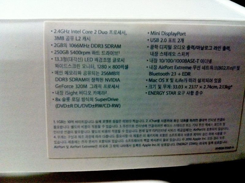 새로운 맥북 2.4GHz : 250GB (2010년 6월초 구매)